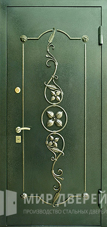 Входная дверь с ковкой №1 представляет собой идеальное сочетание прочности и стиля для частного дома. Эта дверь обладает внешней отделкой из порошкового напыления и внутренней отделкой из винилискожи, предлагая элегантный внешний вид в зелёных и тёмных тонах с добавлением изящной ковки. Конструкция двери включает профильную трубу 50х25 мм, которая обеспечивает надёжную основу, а двухмиллиметровый металлический лист повышает её взломостойкость.